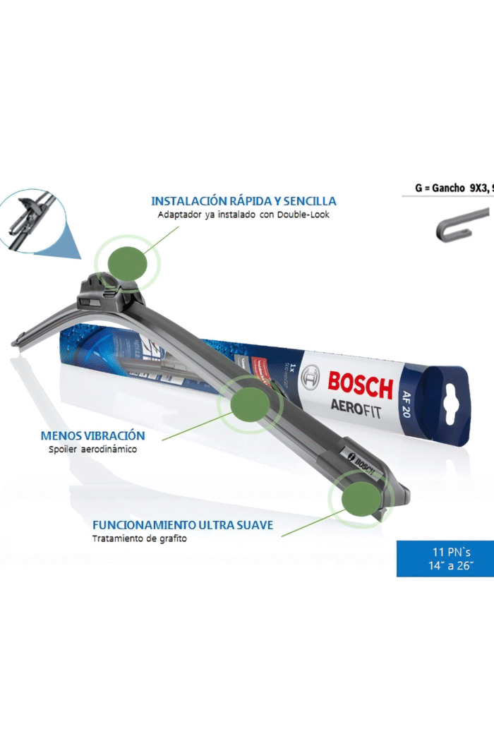 El diseño estilizado y aerodinámico, aunado a los rieles de resorte de alta tecnología y las plumas limpiaparabrisas de goma con revestimiento suave, garantiza una visibilidad clara en cualquier condición meteorológica. Las escobilla limpiaparabrisas Aerofit de Bosch tienen una excelente relación calidad-precio y, por lo tanto, son una buena opción para los vehículos más antiguos y los más pequeños. Rentable: con el respaldo de una calidad indiscutible.
